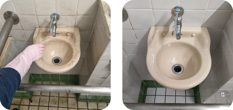 | 便器 洗面ボウル 磁器タイル | 内側壁面 外側壁面(高圧洗浄) | ライニング上部のテラゾ フラッシュバルブ金属 |